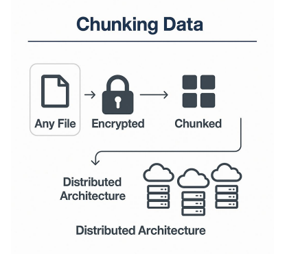 Chunk Works is een data-oplossing waarmee bestanden worden versleuteld en met een slim algoritme in chunks (stukjes) worden opgeknipt. Vervolgens worden de chunks decentraal opgeslagen. Met deze methode wordt de kans op dataverlies beperkt. Daarnaast maakt deze aanpak zowel ransomware aanvallen en datadiefstallen praktisch onmogelijk. Een individuele chunk is waardeloos vanwege de encryptie en de overige chunks zijn verspreid over andere locaties. Hierdoor is het voor een hacker niet mogelijk om een bestand volledig te bemachtigen, te versleutelen of losgeld te eisen.